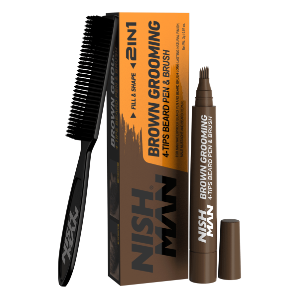 NISHMAN BEARD PEN & BEARD BRUSH DARK BROWN